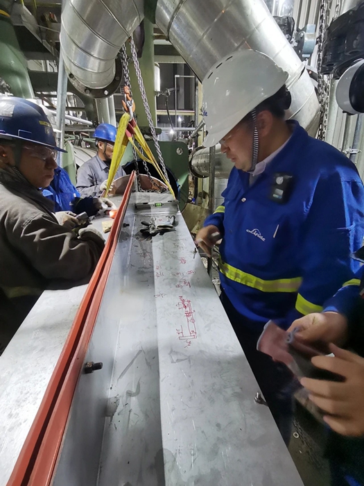 為保證檢修順利推進,負(fù)責(zé)控制系統(tǒng)升級的責(zé)任人左進春提前1年就開始準(zhǔn)備備件。在檢修期間,他的愛人正趕上生產(chǎn)分娩,左進春在愛人分娩后第二天就從張家口家中返回工廠,投入檢修工作中。