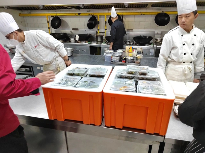 為此,賓館早在5月下旬就統(tǒng)籌協(xié)調(diào)廚師人員、配菜人員,并根據(jù)每日不同的菜譜,具體安排烹飪時間和順序。此外,賓館還對配送路上花費的時長進(jìn)行具體測算,同時明確要求,辦公室和后勤人員要在保證安全衛(wèi)生的條件下,充實到分裝配送一線,最大限度確保每一份盒飯,在中午休息時第一時間送達(dá)到用餐人員手中。當(dāng)賓館的送餐人員將盒飯配送至比賽現(xiàn)場,看著賽事人員大口大口吃著冒著熱氣的飯菜時,內(nèi)心涌起無比的自豪和欣慰。