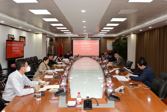 1月10日下午,北京化工集團(tuán)黨委理論學(xué)習(xí)中心組以“民主生活會(huì)專(zhuān)題學(xué)習(xí)”為主題,開(kāi)展中心組理論學(xué)習(xí)專(zhuān)題研討,黨委書(shū)記、董事長(zhǎng)陳宇主持學(xué)習(xí)研討并帶頭領(lǐng)學(xué)。此次學(xué)習(xí)研討是黨紀(jì)學(xué)習(xí)教育專(zhuān)題民主生活會(huì)召開(kāi)前,為切實(shí)將理論學(xué)習(xí)中心組成員思想和行動(dòng)統(tǒng)一到黨中央決策部署和市委要求上來(lái),打牢開(kāi)好民主生活會(huì)的思想基礎(chǔ)而召開(kāi)的。