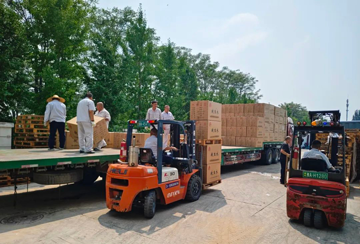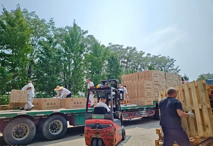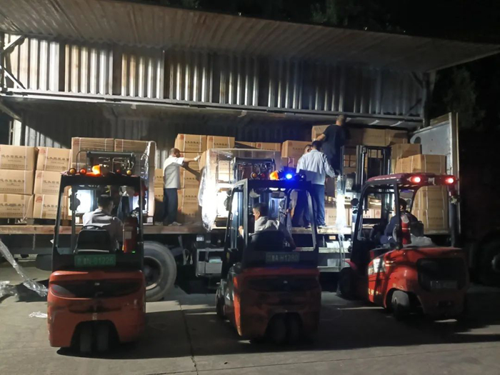 華騰化工立即調(diào)度人力、物力,爭分奪秒組織應(yīng)急物資配送。歷經(jīng)5個多小時不間歇備貨、裝載,滿載應(yīng)急物資的4輛大貨車陸續(xù)發(fā)車,前往抗汛一線。