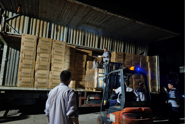 剛剛出庫完畢,還沒等干部職工歇歇腳,17時左右,市應(yīng)急局再次發(fā)來指令,追加雨衣3700套,華騰化工迅速調(diào)度第5輛專用車輛進(jìn)行物資裝車,干部職工也馬不停蹄地投入到裝載工作中。正在酣戰(zhàn)之時,18時許,市應(yīng)急局第三道指令接踵而至,追加18000條編織袋和32000條吸水膨脹麻袋。華騰化工再次緊急調(diào)度第6、7輛專用車輛,現(xiàn)場干部職工發(fā)揚(yáng)連續(xù)作戰(zhàn)精神,在3小時內(nèi)完成全部應(yīng)急物資的裝車、發(fā)貨任務(wù)。