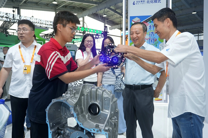 致力于職業(yè)技能人才培養(yǎng)的技師學(xué)院,在互動(dòng)中呈現(xiàn)世界技能大賽金牌項(xiàng)目——機(jī)電一體化的卓越成果,學(xué)院以人機(jī)互聯(lián)的3D掃描和工業(yè)機(jī)器人吸引了大批參觀(guān)者駐足,讓觀(guān)眾近距離感受產(chǎn)教融合的創(chuàng)新實(shí)踐和“化工+教育”的協(xié)同價(jià)值。