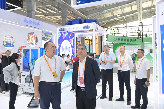 市經(jīng)濟(jì)和信息化局黨組書(shū)記、局長(zhǎng)姜廣智,市國(guó)資委黨委書(shū)記、主任吳禮順先后帶隊(duì)來(lái)到集團(tuán)展位,了解集團(tuán)發(fā)展成果。