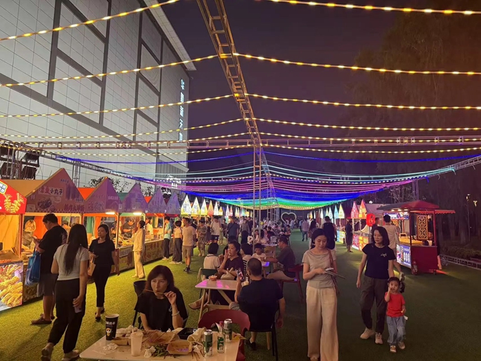 自夜市開啟以來,經濟效益持續(xù)向好。華騰新天地商場客流量同比大幅增長,親子家庭消費占比超過 60%。夜市中的市集匯聚了美食、潮玩等幾十家商戶,周末更有精彩的節(jié)目演出,現(xiàn)場人氣高漲,成為勁松地區(qū)打卡的熱門地標。